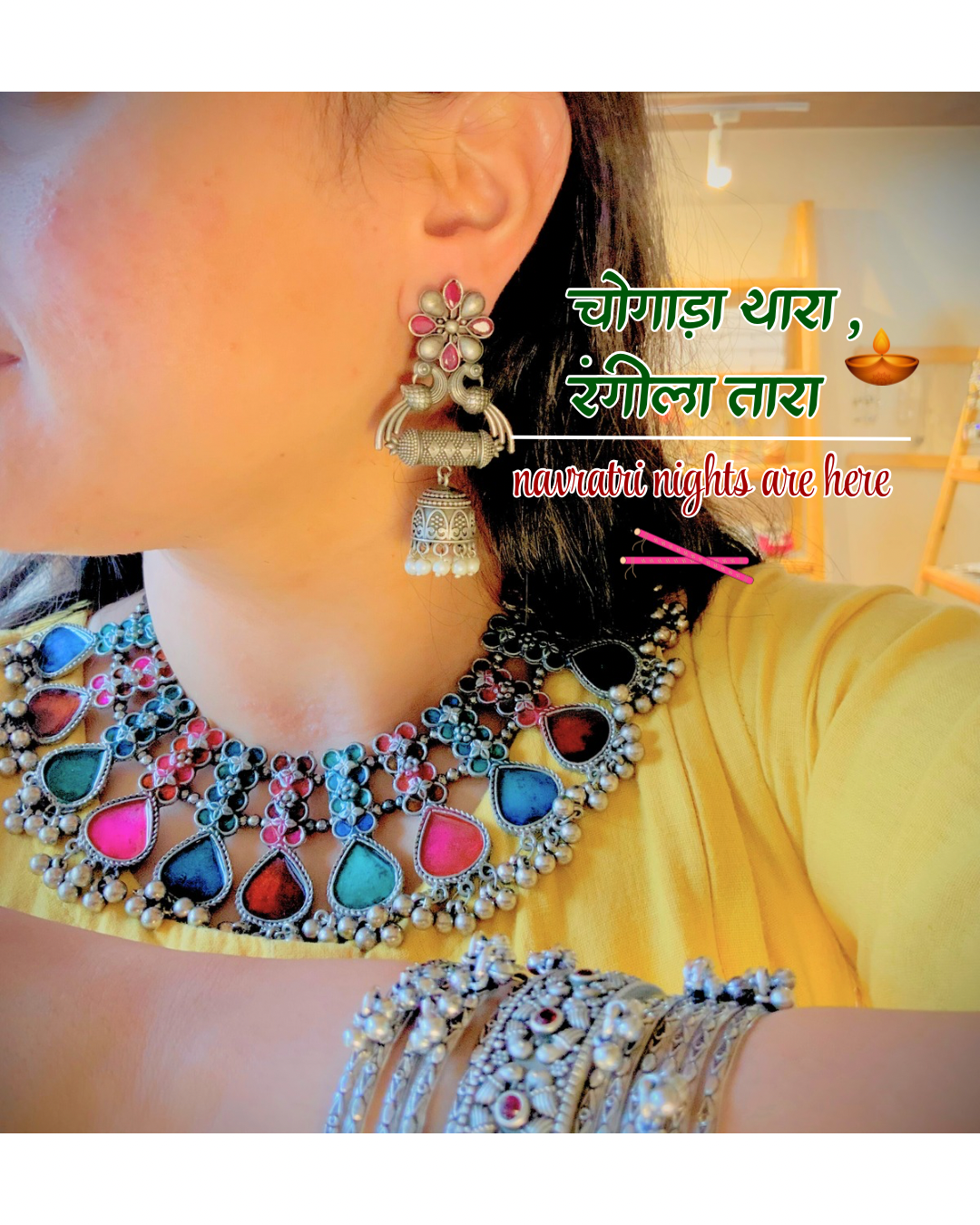 Our pieces are lightweight, anti-tarnish coated, and made for everyday elegance or festive nostalgia. Whether it’s a bold pair of chandbalis or a layered boho necklace, they carry the echo of bazaars, temples, and old ghats in every oxidized shade of silver.