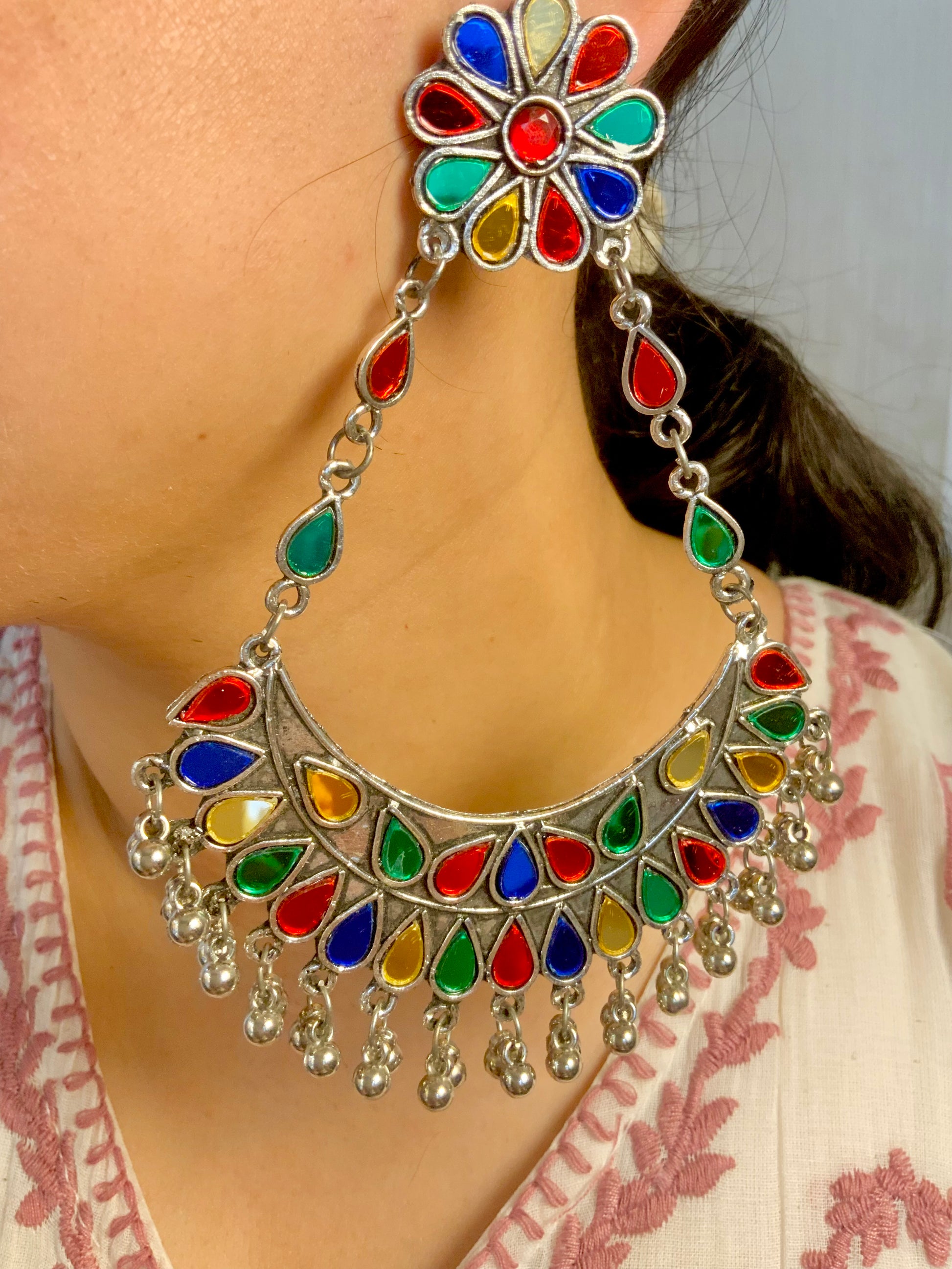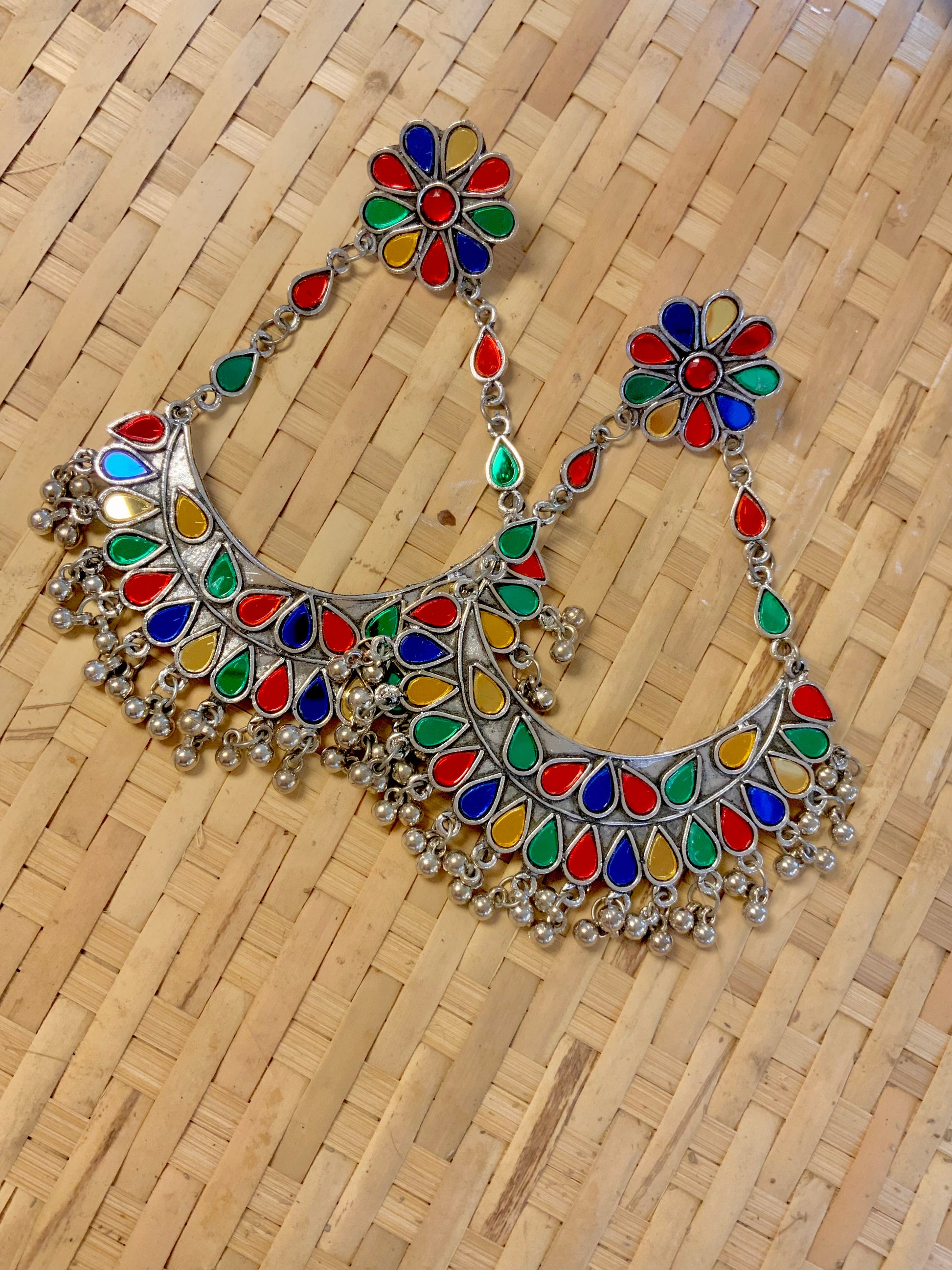 Beautiful chandbalis with mirror work,ideal for mehndi nights,haldi functions,navratri Ofcourse
