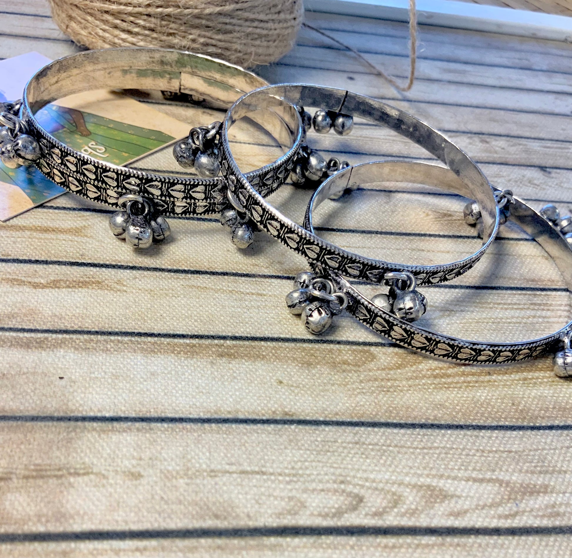 Crafted in oxidized silver with dainty heart motifs and soft ghungroo accents, Mehfil bangles evoke the sound and soul of old courtyard gatherings. Each bangle sings with nostalgia—etched with intricate patterns and adorned with bells that tinkle like laughter at a moonlit mehfil.